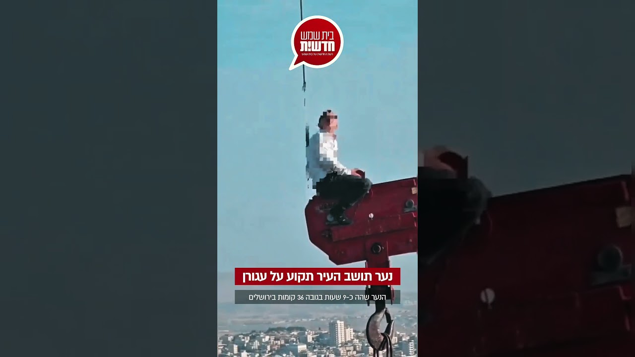 נער כבן 15 תושב העיר בית שמש הגיע במהלך הלילה האחרון לעיר ירושלים, שם טיפס על עגורן הנמצא על מגדל בבנייה בן 36 קומות, במהלך הטיפוס גלש הנער אל קצה העגורן שם נתקע ושהה שם כ-9 שעות עד לחילוצו המורכב.